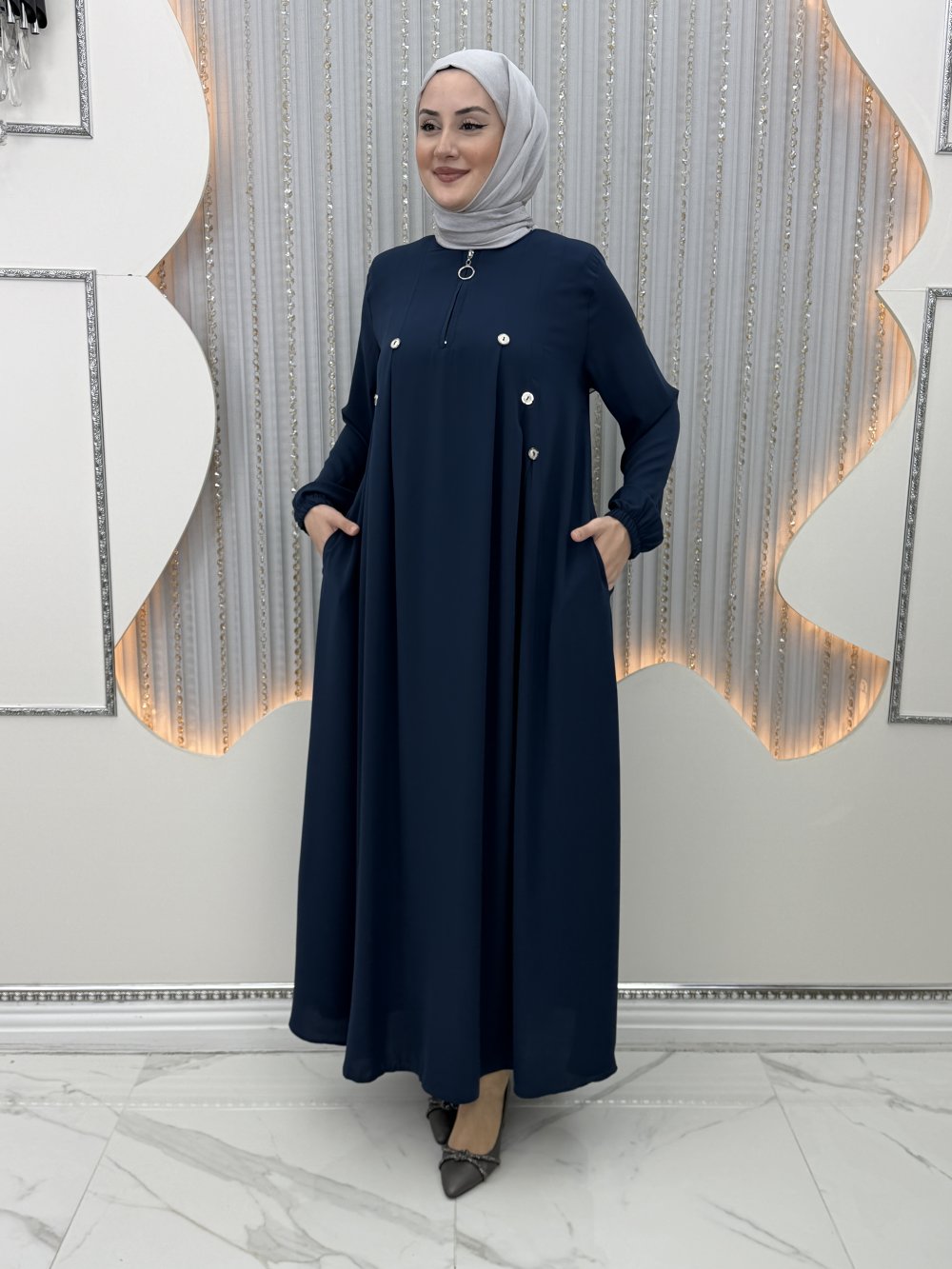 3 Düğme Elbise Lacivert