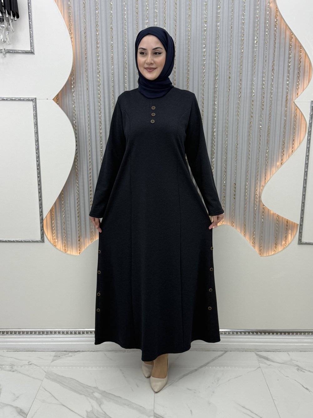 Etek ucu yanlardan düğme görünüm detaylı