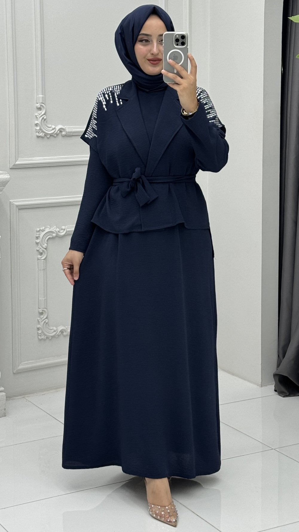 Alara Elbise, hem iş hem de günlük hayatınızda rahatlıkla tercih edebileceğiniz çok yönlü bir parçadır. Şıklığı konforla buluşturan bu tasarım, sezonun en gözde modellerinden biri olacak!