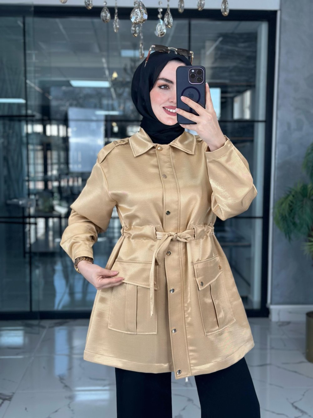 Modal Kumaştır.Gizli Fermuarlı ve Çıtçıtlıdır. Köprü kuşaklıdır.Omuz Apolet Aksesurlı ve Ceplidir.