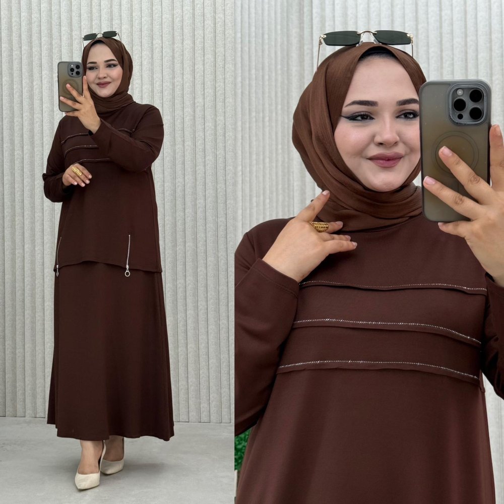 Aşkım Etekli Takım Kahverengi