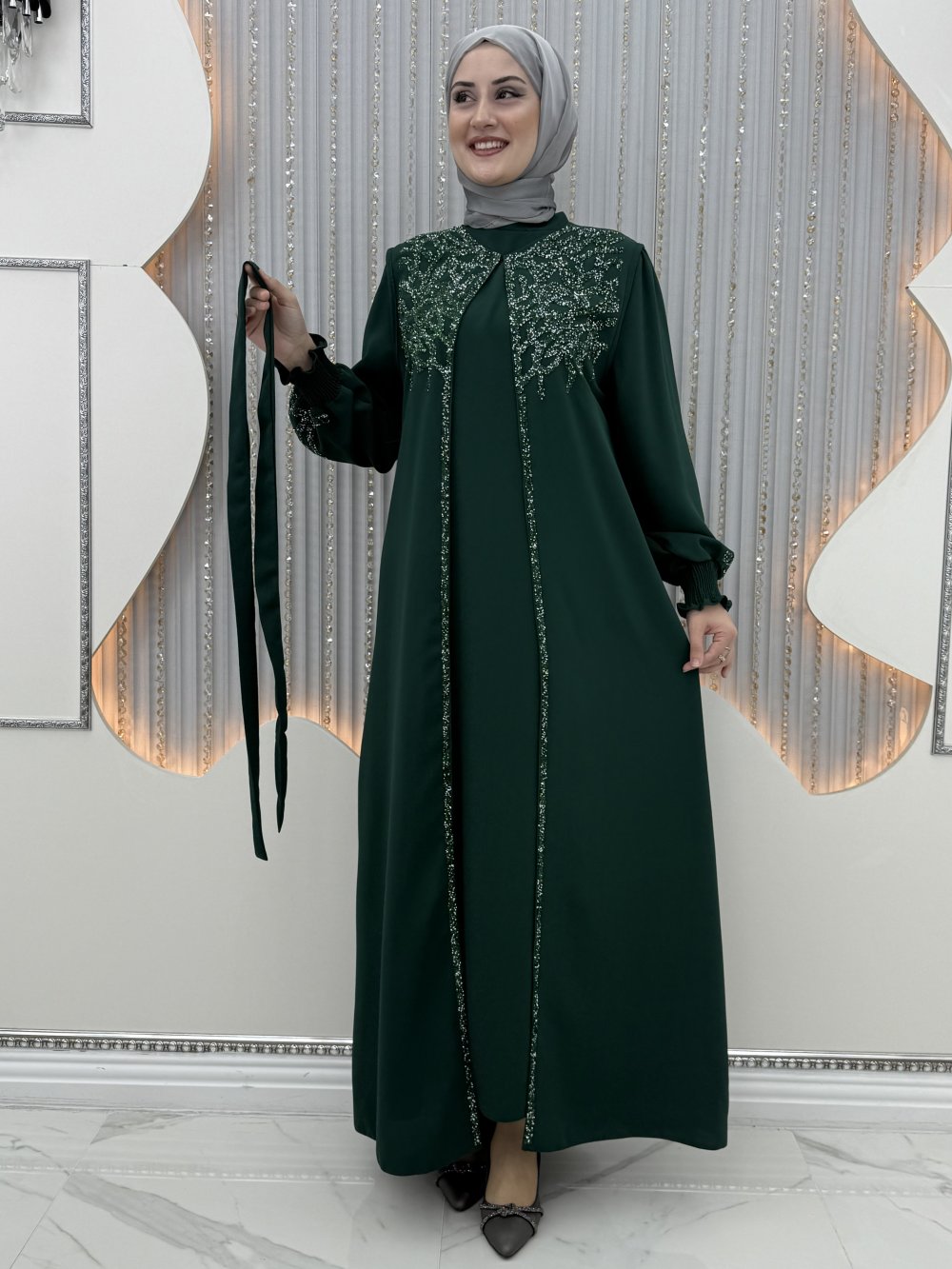 Aytaşı yelekli takım Zümrüt