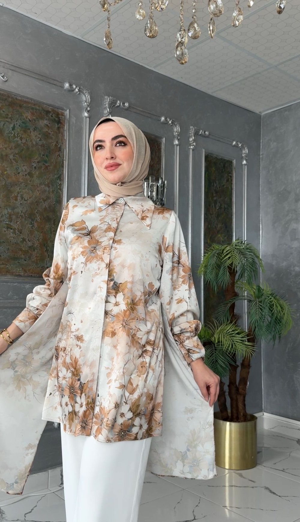 Dijital Baskı Empirme Kumaştır. Tunik Gizli Düğmedir.Pelerinli, Manşet Koldur.