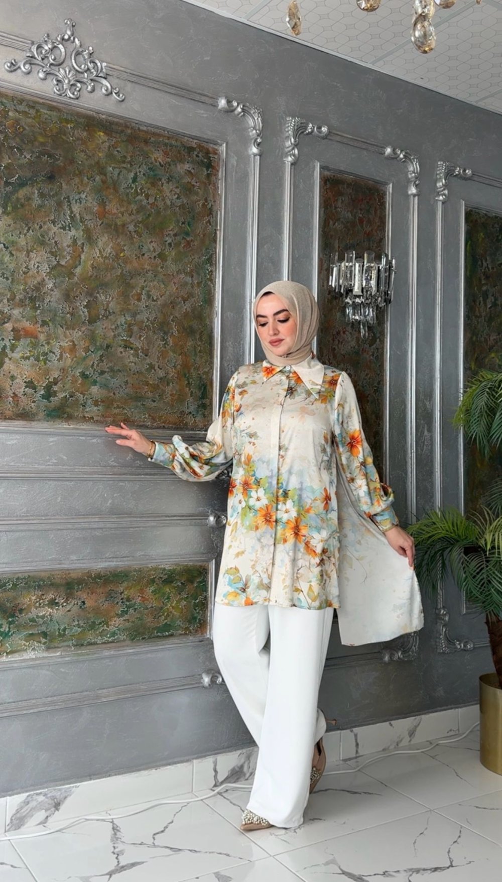 Dijital Baskı Empirme Kumaştır. Tunik Gizli Düğmedir.Pelerinli, Manşet Koldur.