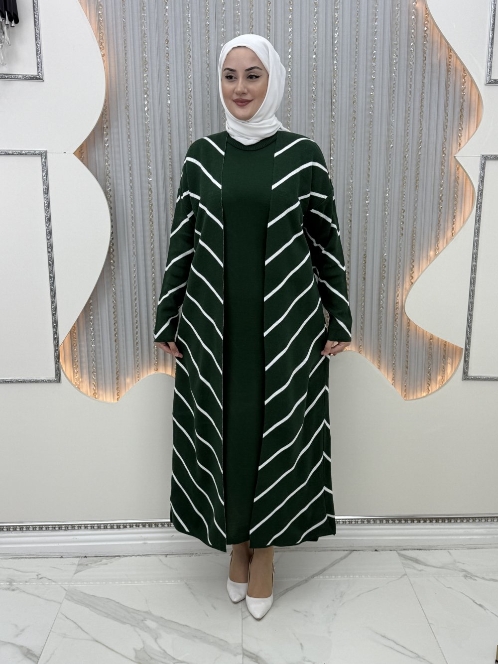 Bukle Elbiseli Hırka Zümrüt