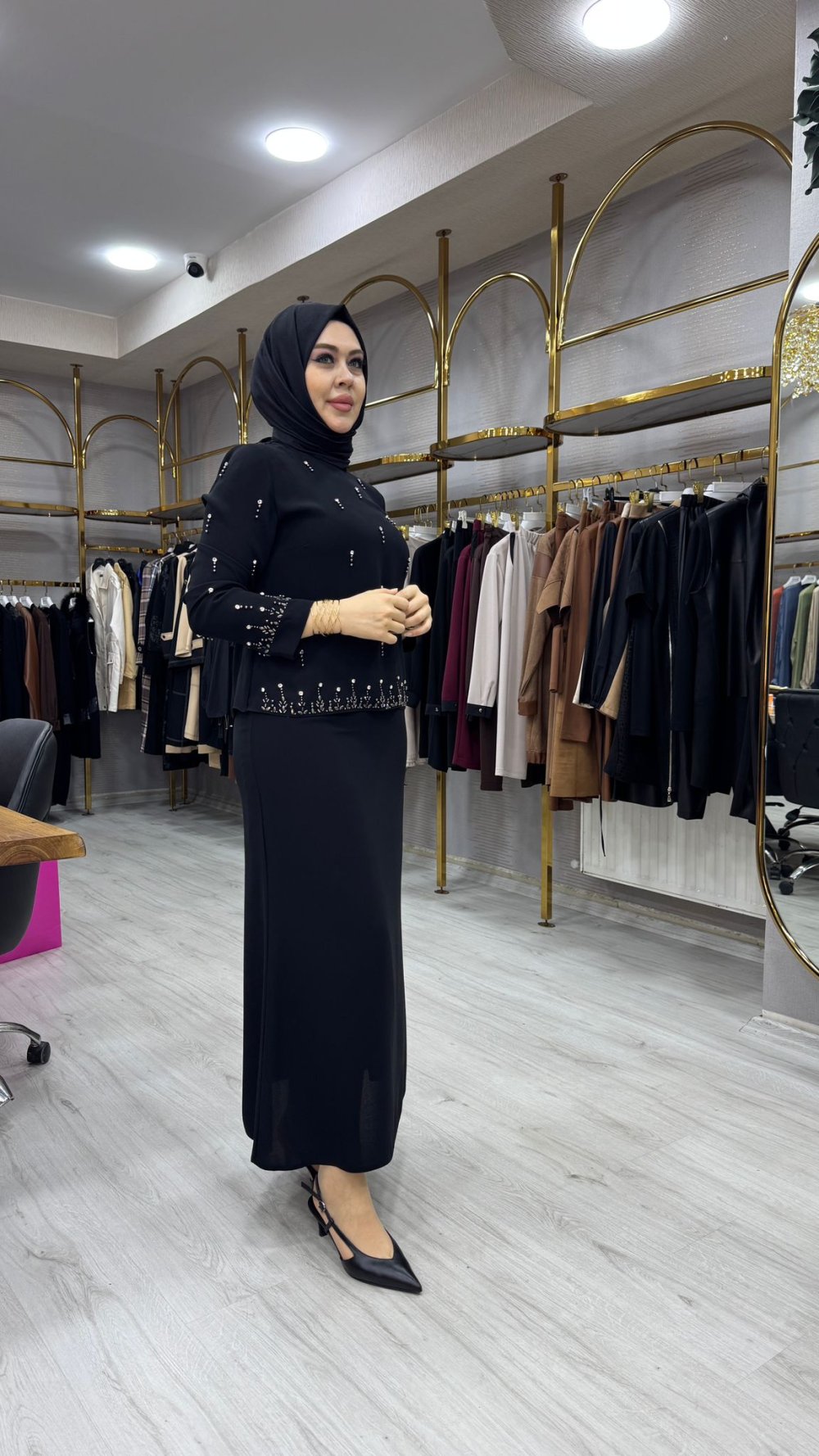 Kumaşı suzanna kumaştır. Etek beli lastikli değildir. Tunik arkası