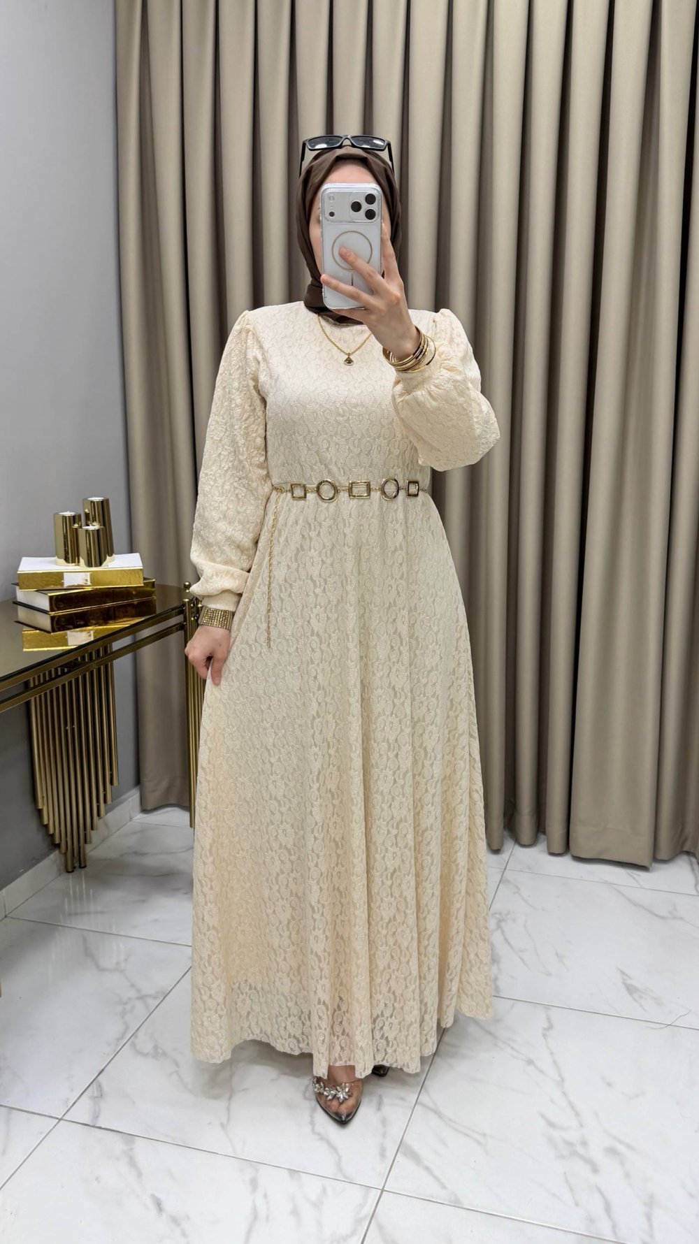Dantel Elbise Krem