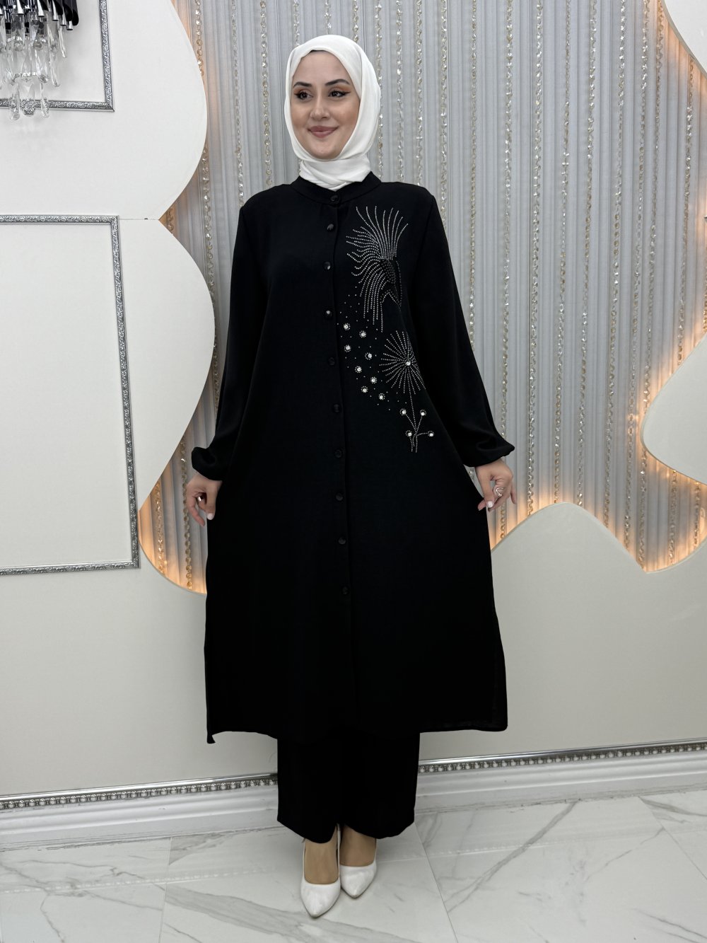 Ön tek yanı taş detaylı