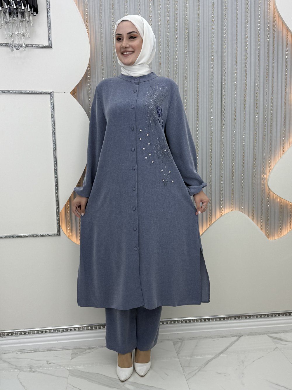 Ön tek yanı taş detaylı