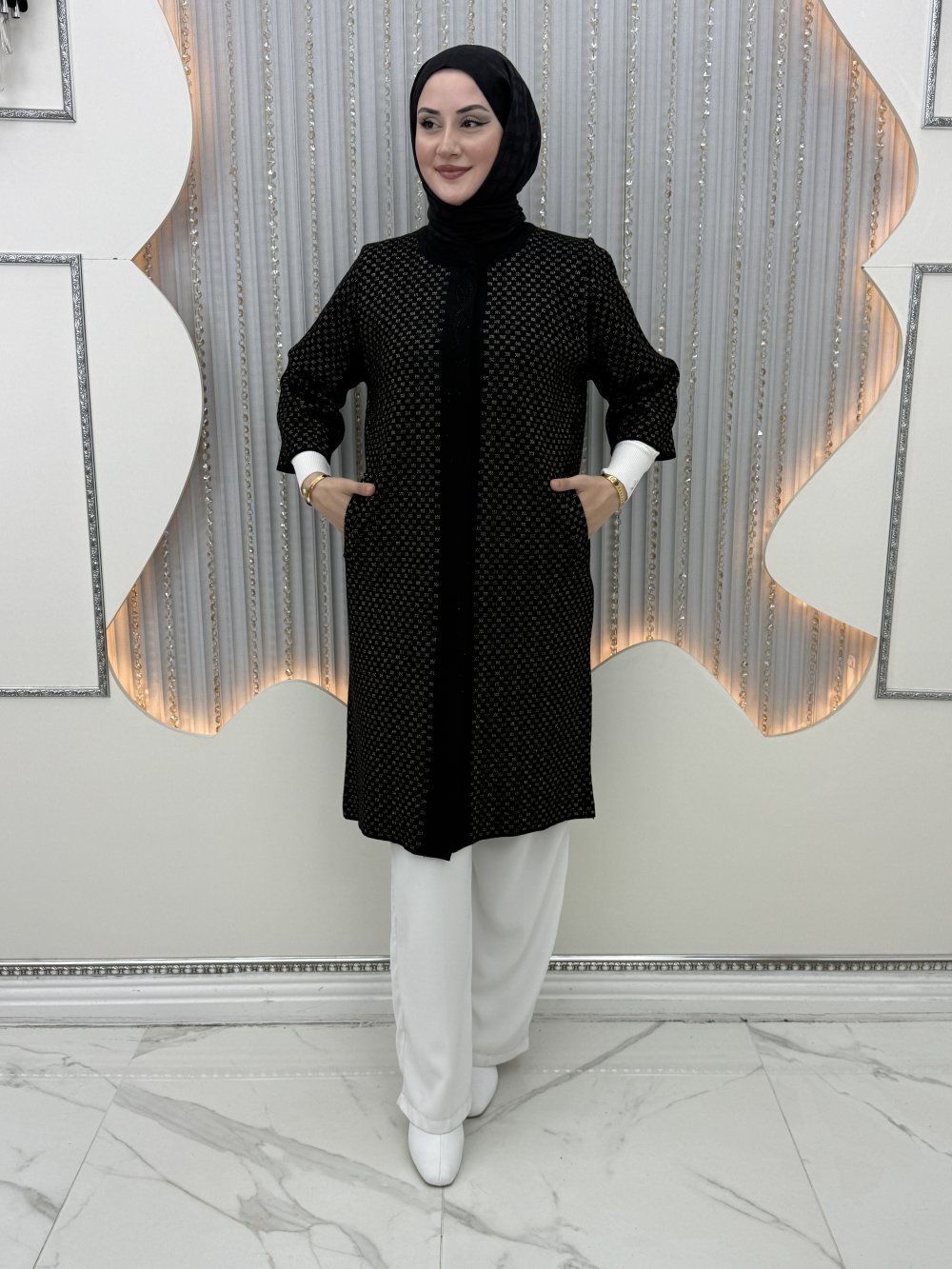 Siyah simli kendinden desenlidir