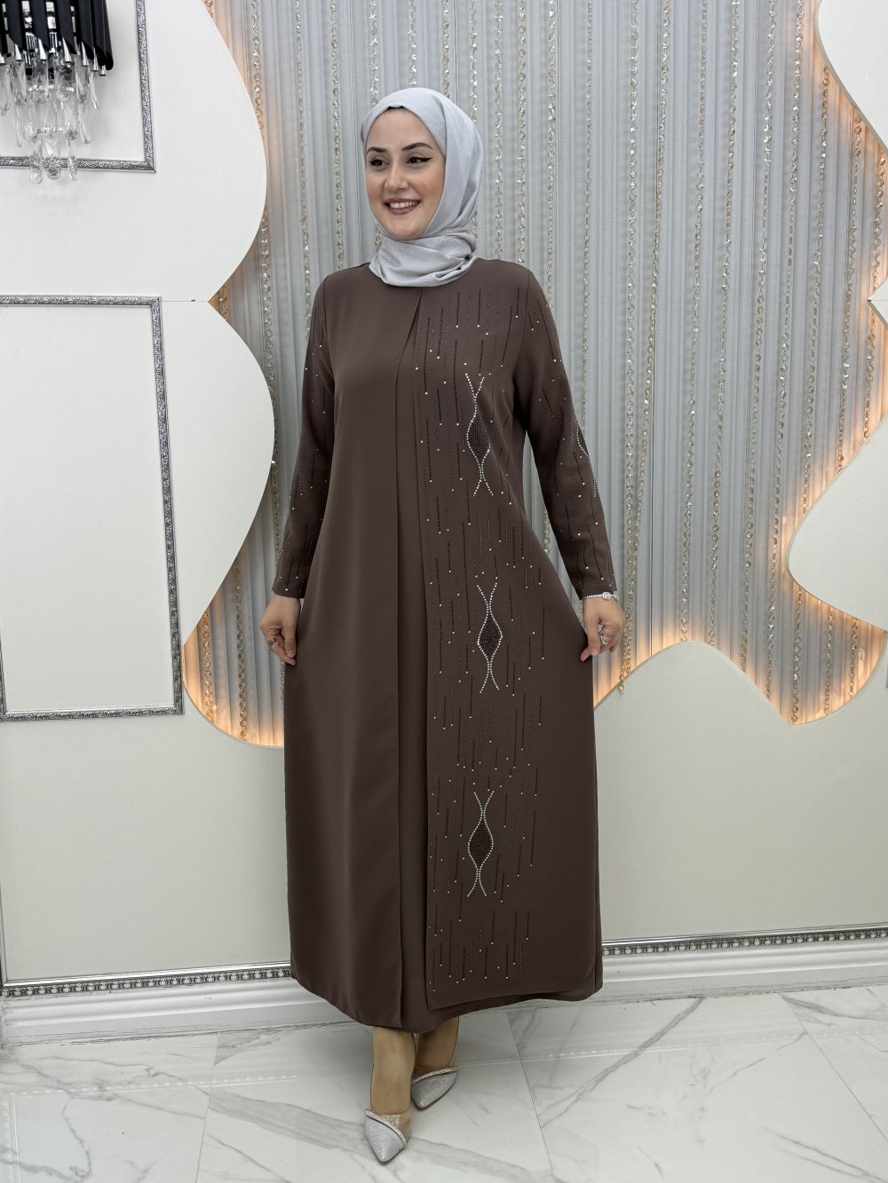 Ella Taşlı Abiye Kahverengi