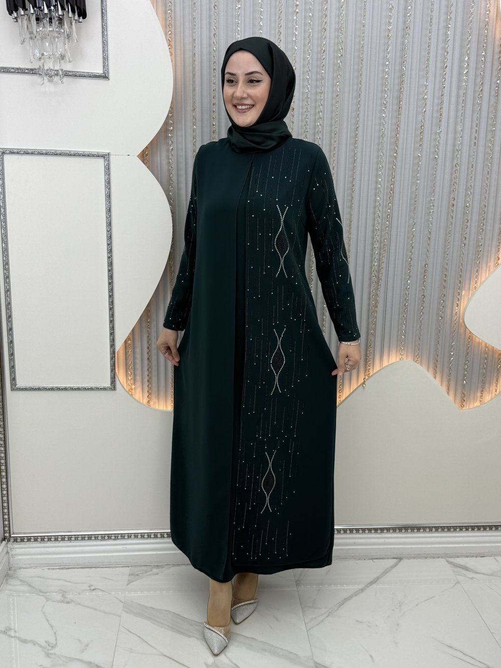Ella Taşlı Abiye Zümrüt
