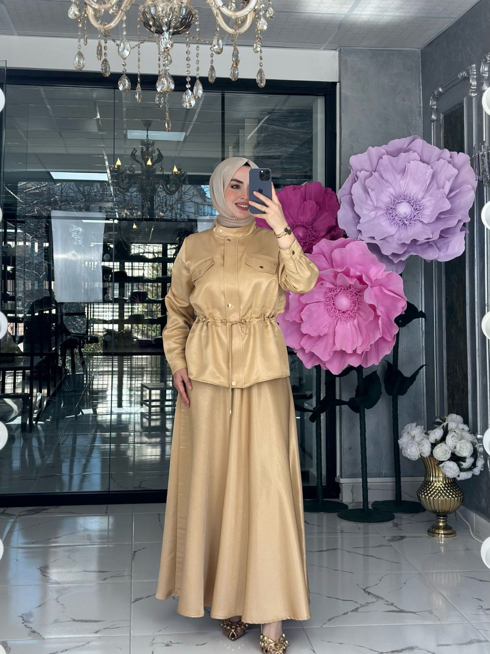 Modal Kumaştır. Sahte Cep Kapaklı, Tünel Büzgü Kuşak Detaylı,Kloş Etek