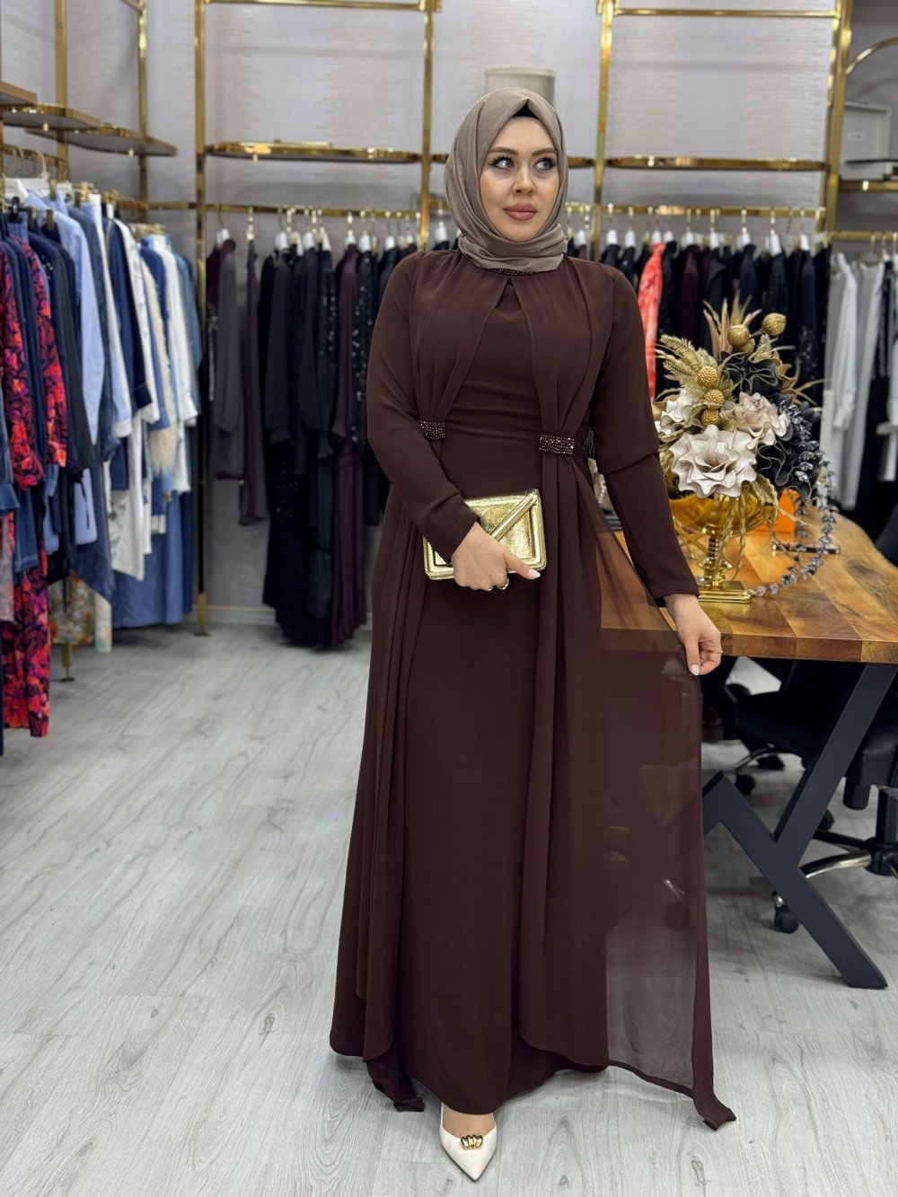 Erva Abiye Elbise Kahverengi