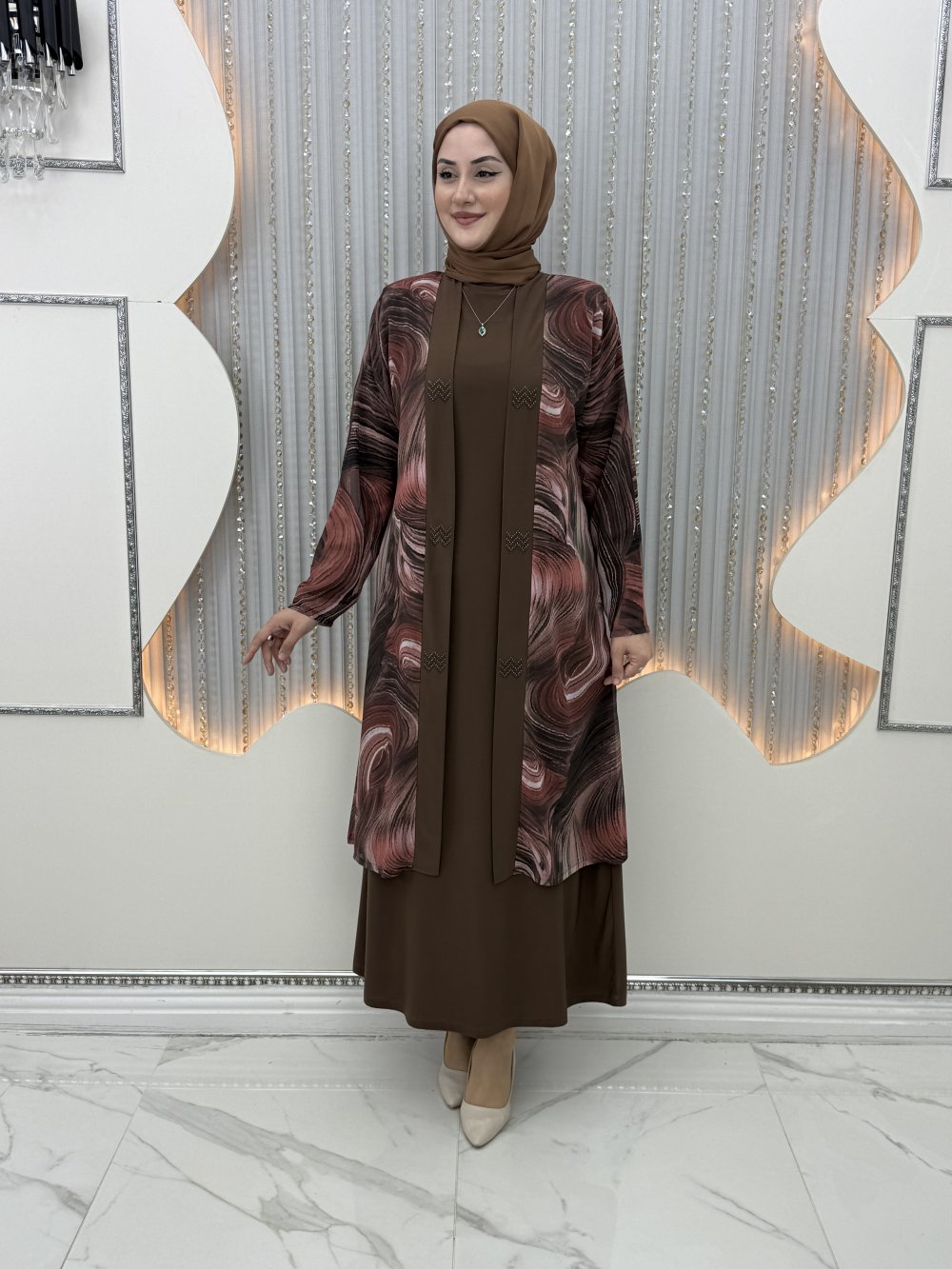 Galaksi Elbiseli Hırka Kahverengi
