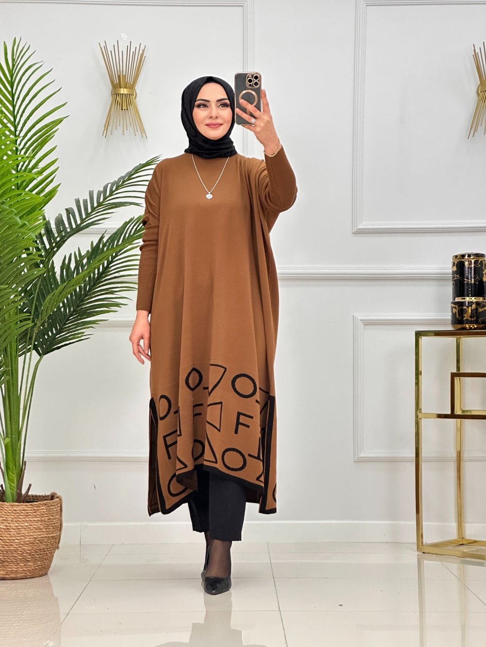 GÖZDE TRİKO TUNİK-KAHVERENGİ