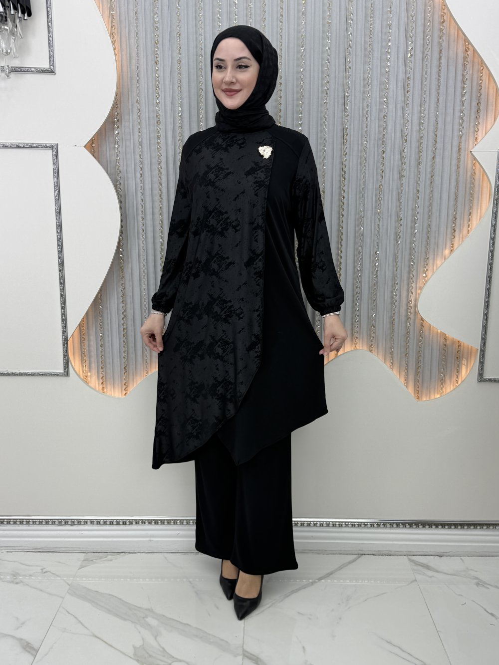 Gülümser Pantolonlu Takım Siyah