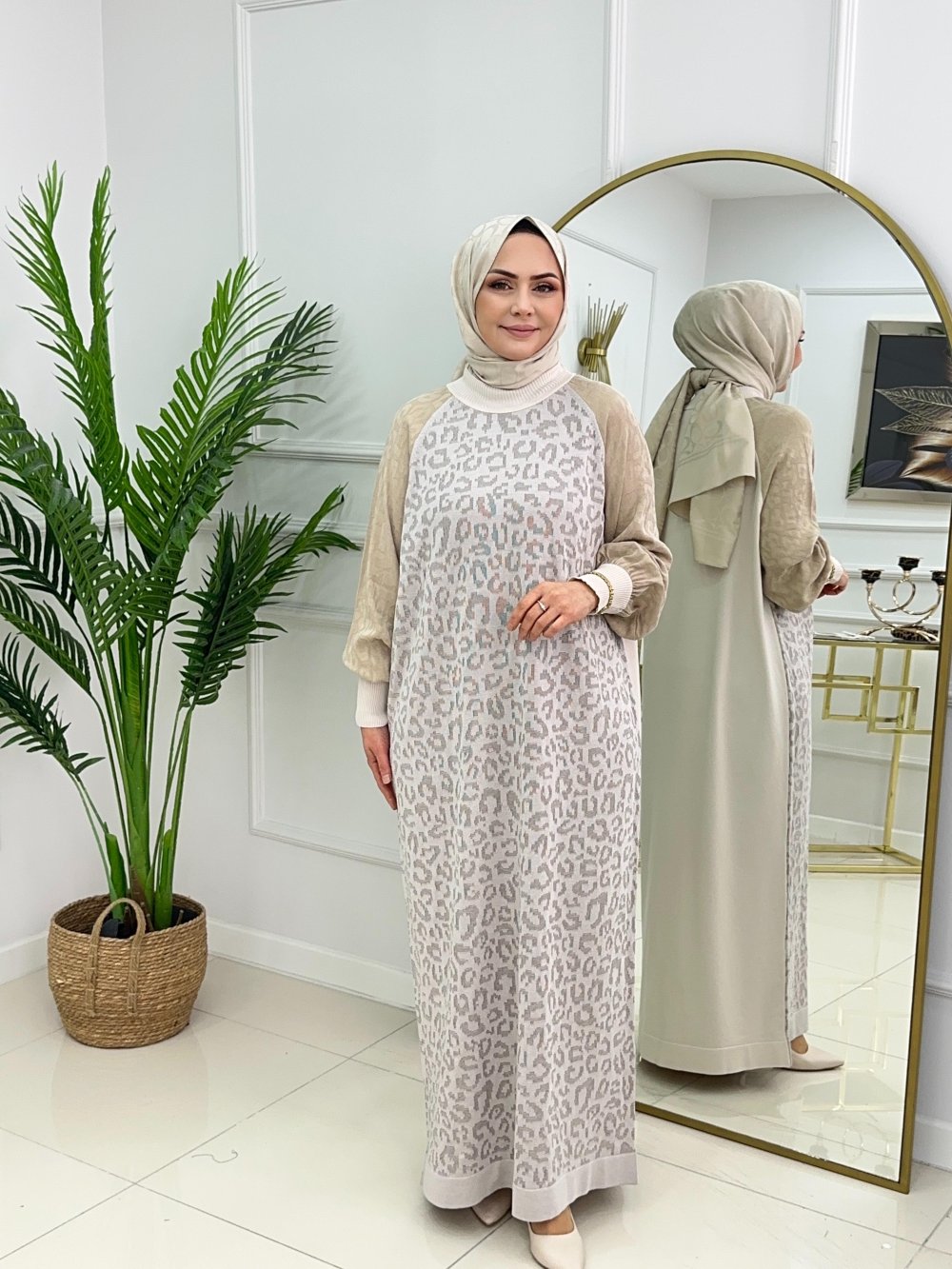 HAVVA MERSERİZE ELBİSE - BEJ
