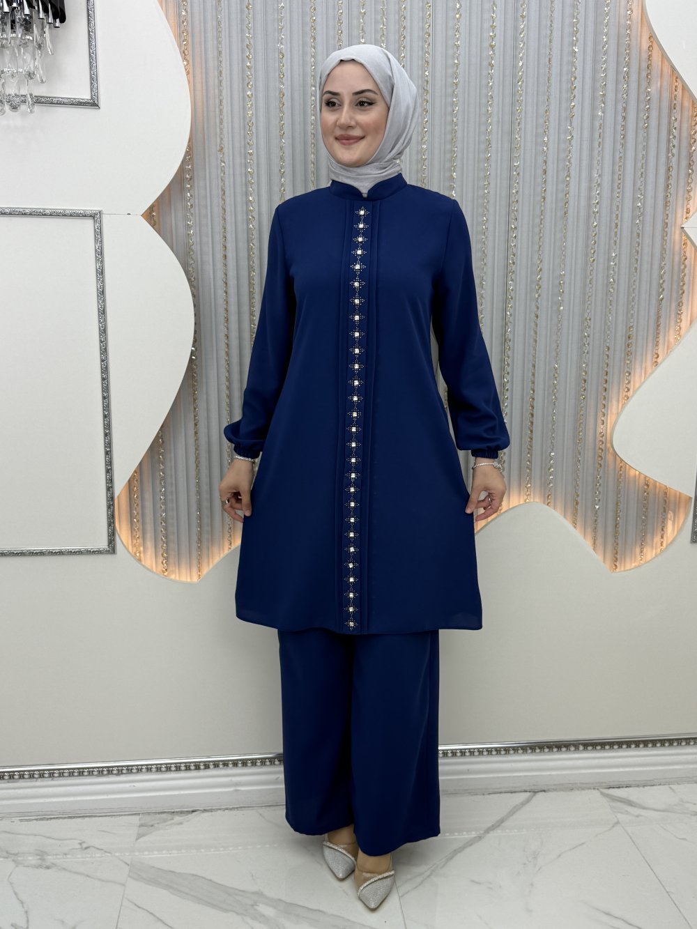 tunik ön boydan taşlı