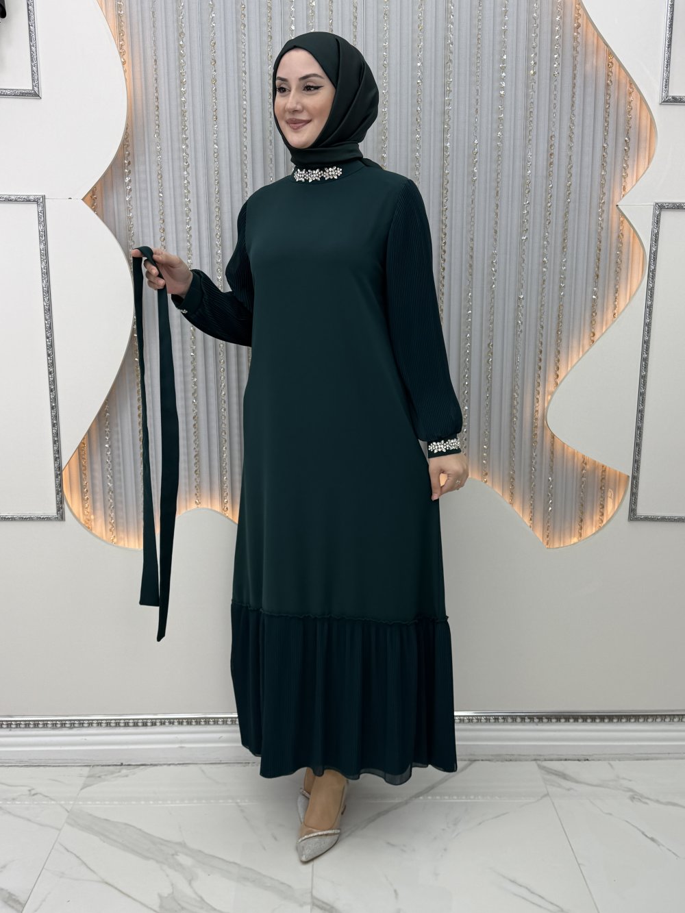 Etek ucu şifon pileli