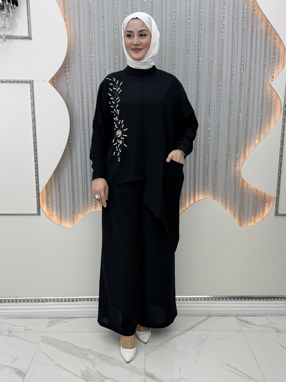 Ön tek yanı inci taş detaylı