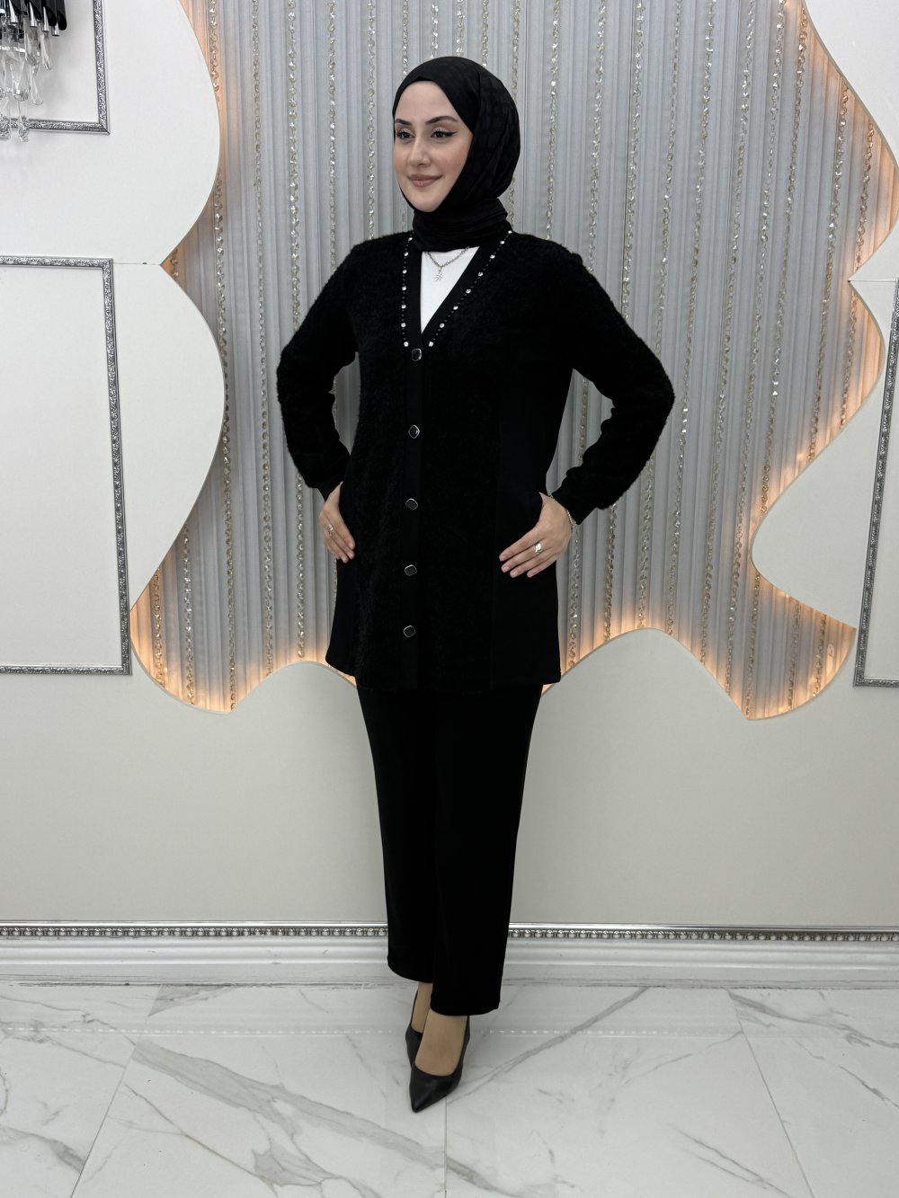 İşleme pantolonlu takım Siyah