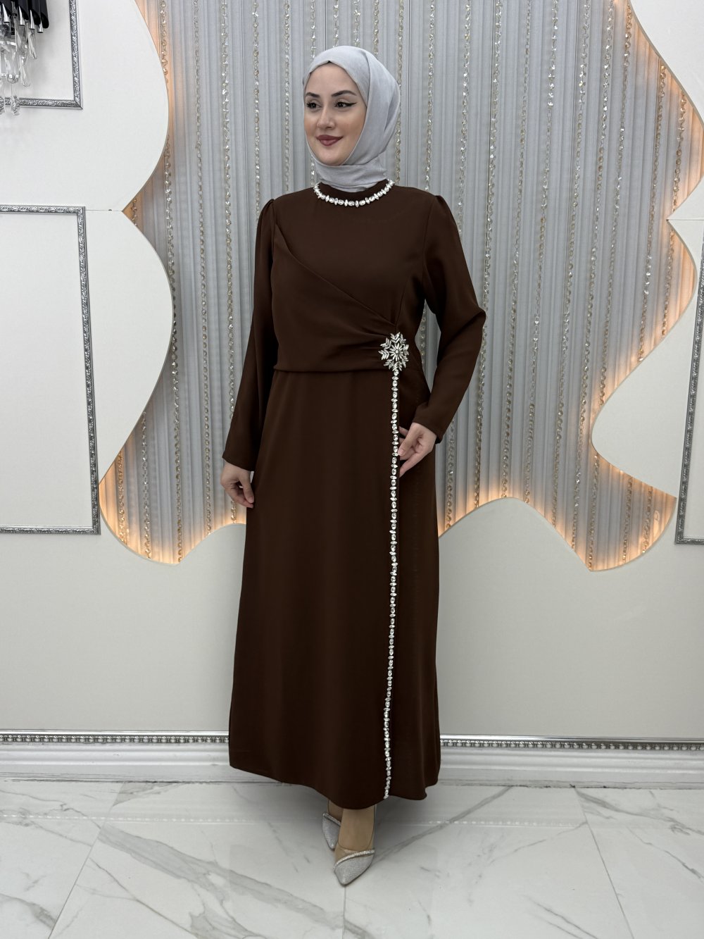 Kışmasalı Abiye Koyu Kahverengi