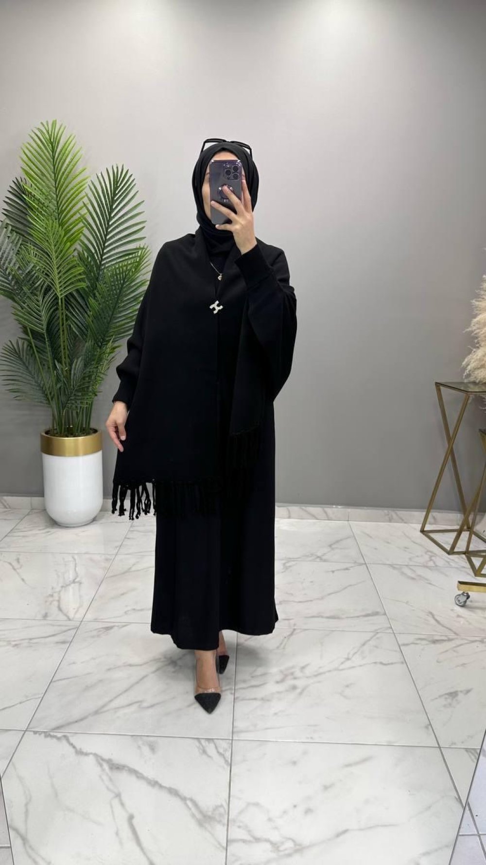 Kollu Şal Panço Siyah