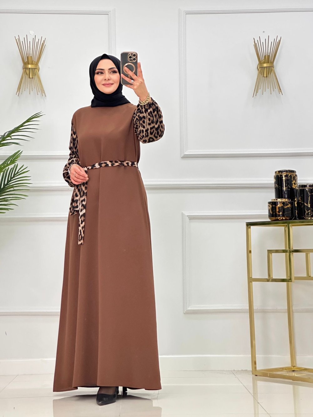 Krep kumaş kollar leopar şifon (iç göstermez)