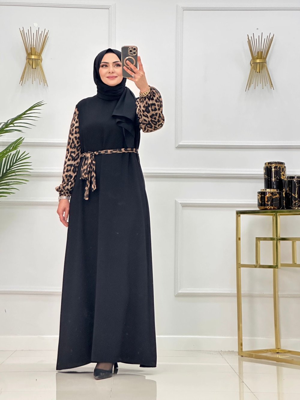 Krep kumaş kollar leopar şifon (iç göstermez)