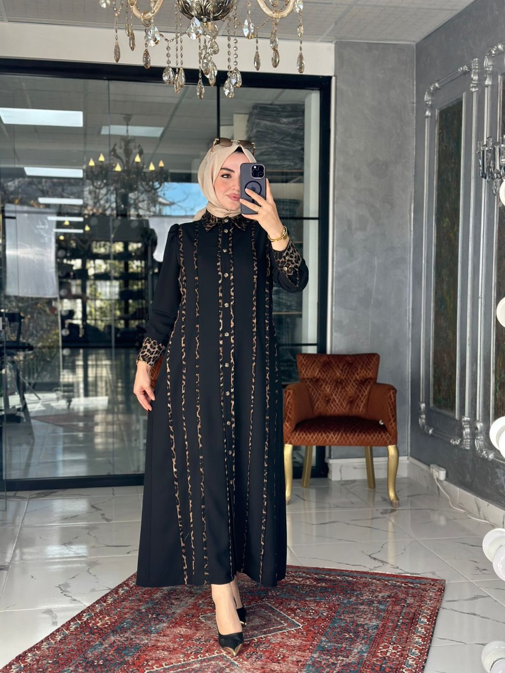 Kumaşı İthal krep kumaştır. Leopar biyelidir. Boydan düğmelidir.