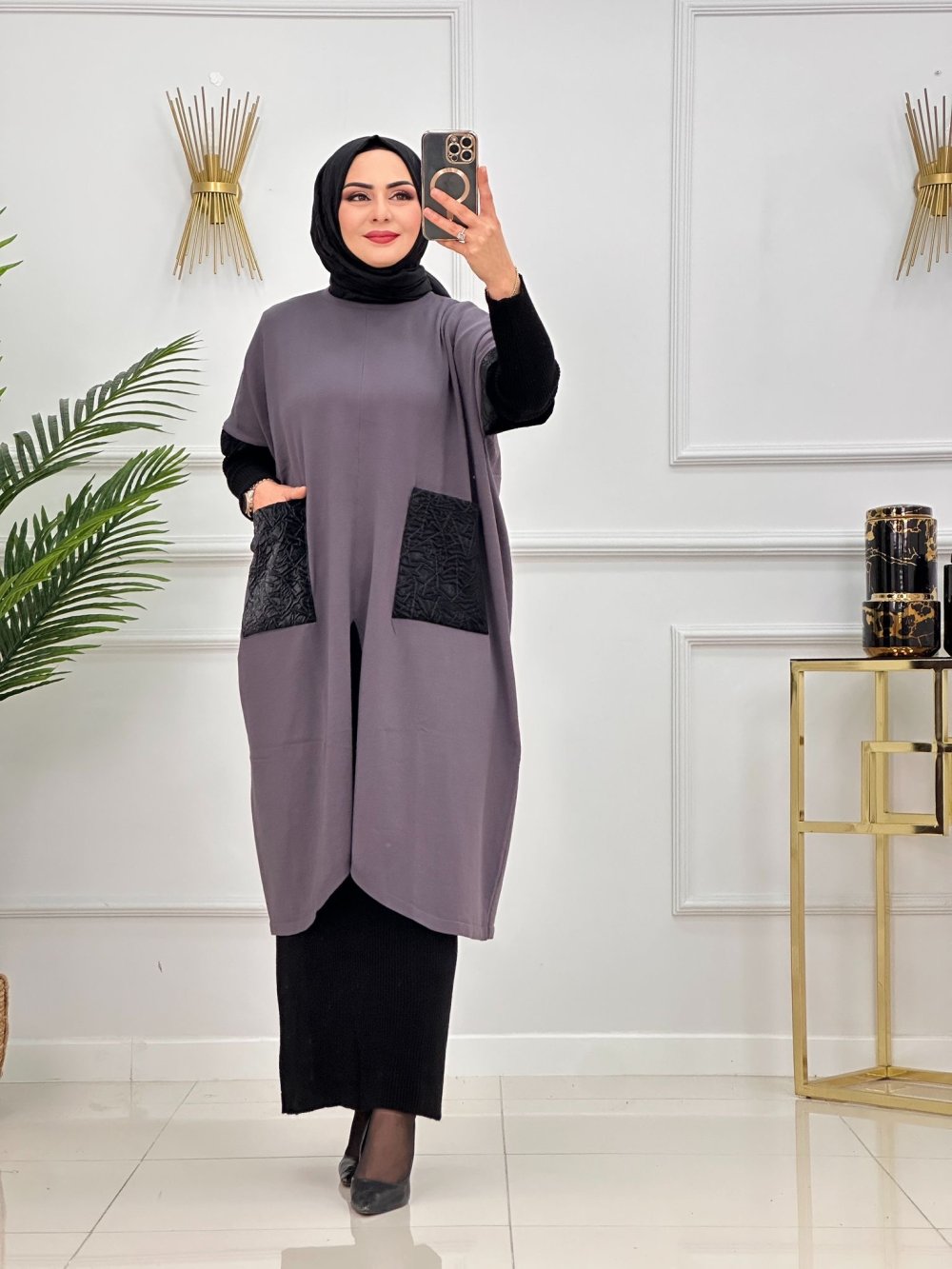 Sıvama deri garni Melisa panço/tunik