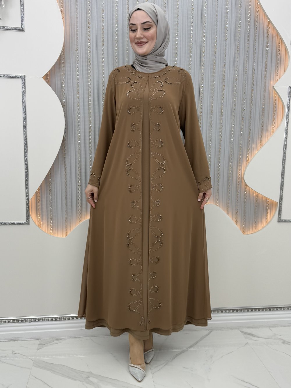 Mücevher elbiseli hırka Sütlü Kahve