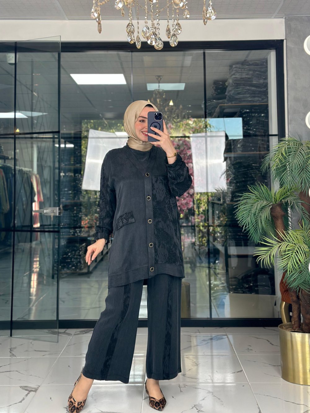 Mücevher Üçlü Takım Siyah