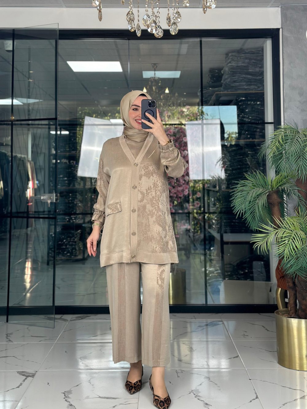 kumaşı ipek qupradır. İçliği sıfır kolludur. Pantolon beli lastiklidir. Cebi yoktur.