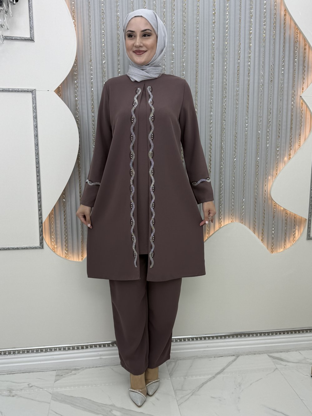 Muhteşem pantolonlu takım Kahverengi