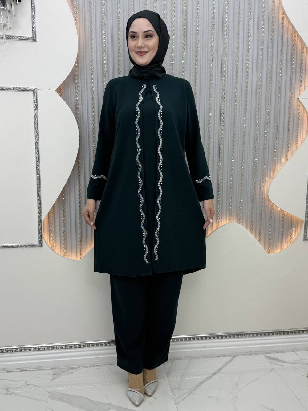 Muhteşem pantolonlu takım Zümrüt