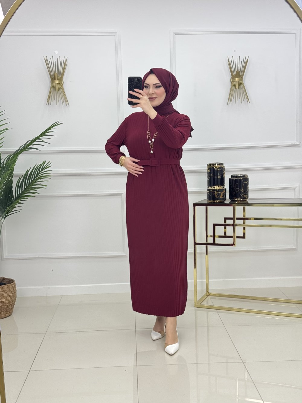 NAZLI PİLİSE ELBİSE-BORDO