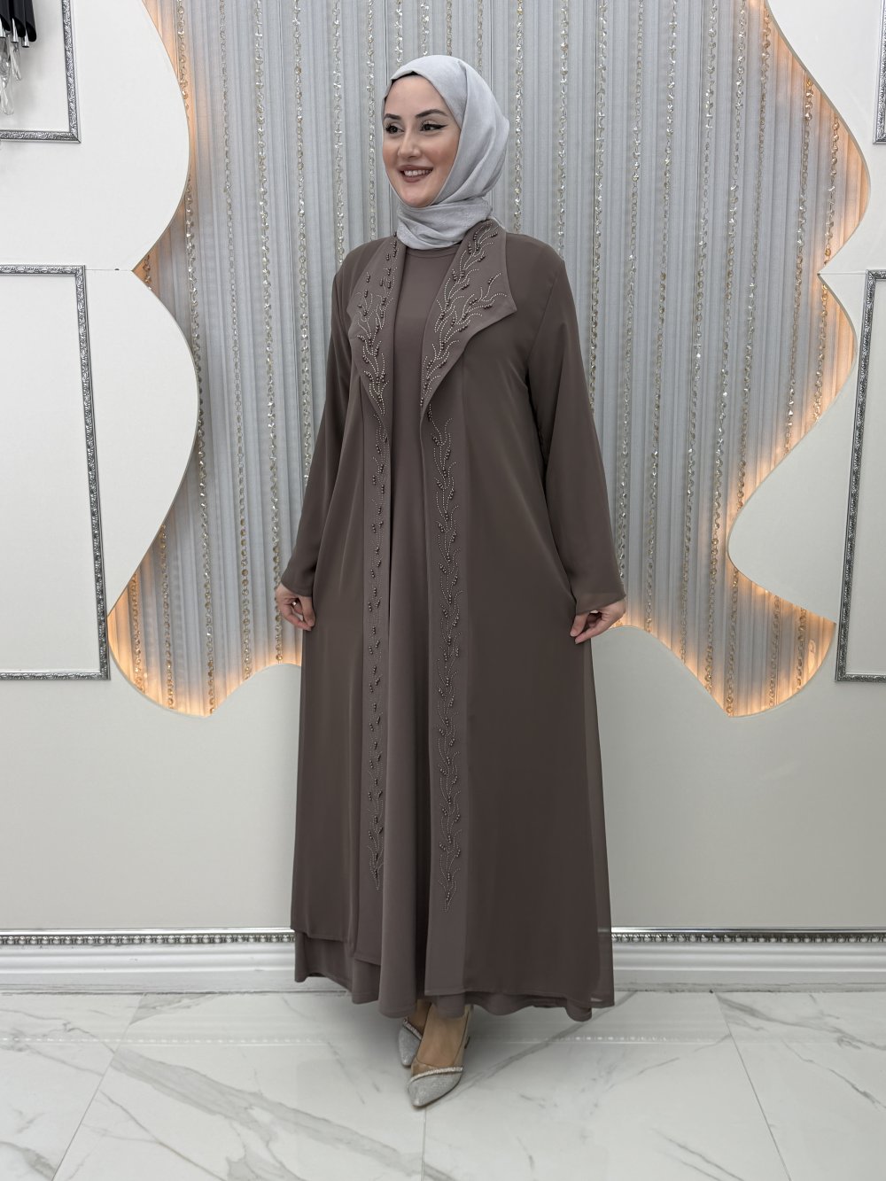 Nefsun Elbiseli Hırka Vizon