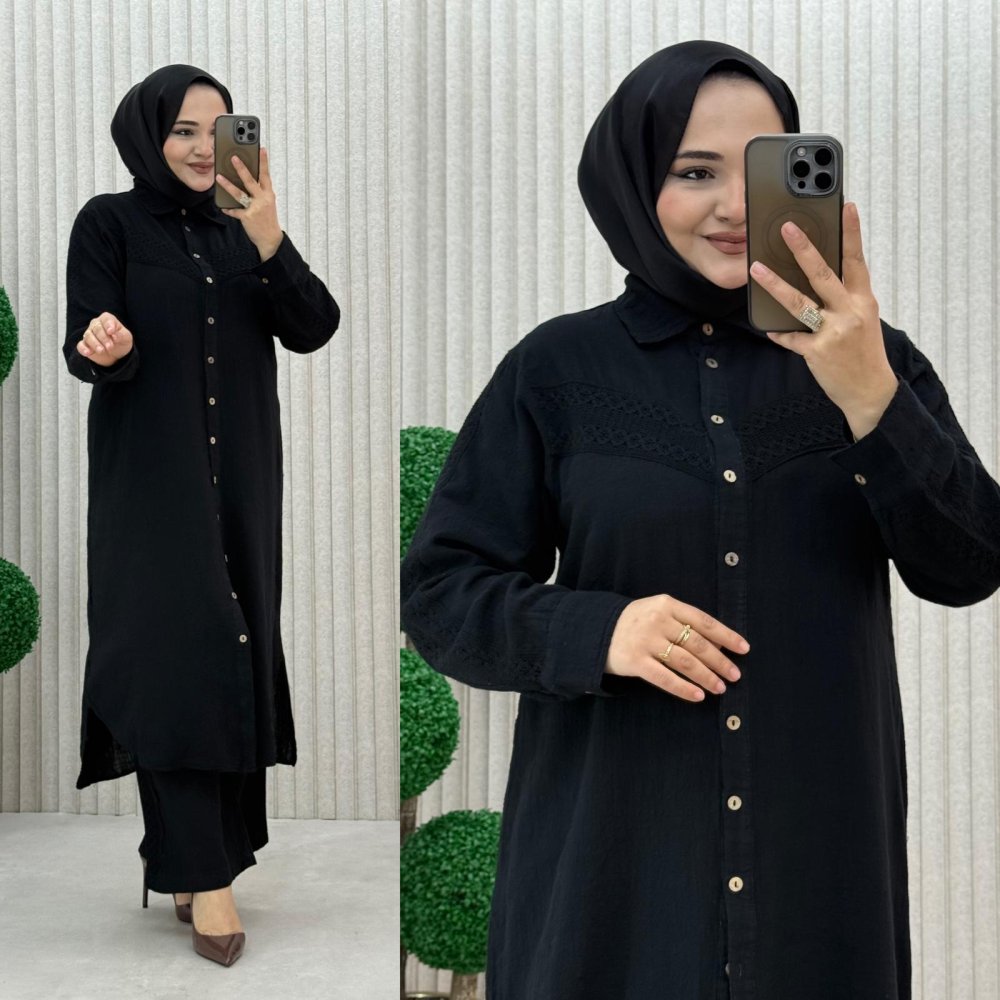 ?2 beden Göğüs 56 cm Tunik Basen 64 cm Pazu 22 cm Pantolon Bel açık 54 cm