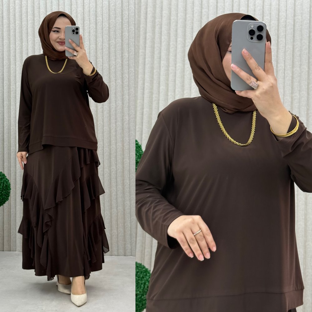 Özlem etekli takım Kahverengi