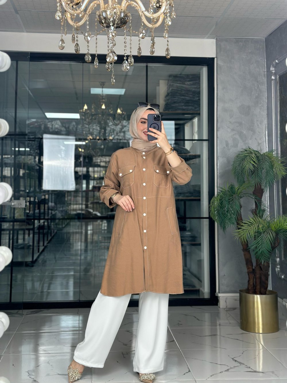 Tencel Yıkama Kumaştır. Çıtçıtlı, Ceplidir.