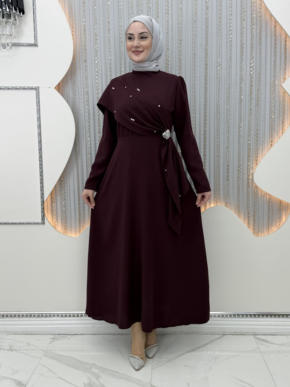 Parıltı Abiye Bordo