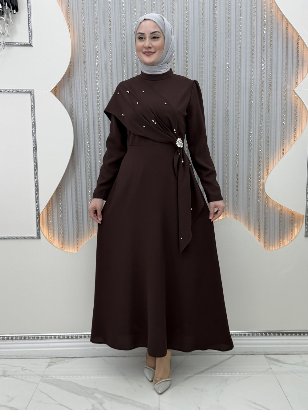 Parıltı Abiye Kahverengi