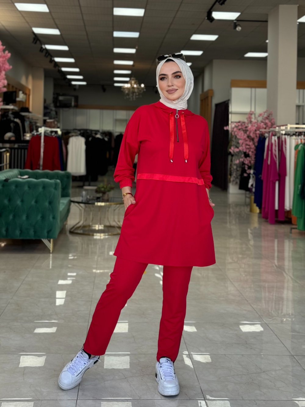 Kumaşı oysho kumaştır. Kapüşonludur. Kapüşonu çıkmaz.
