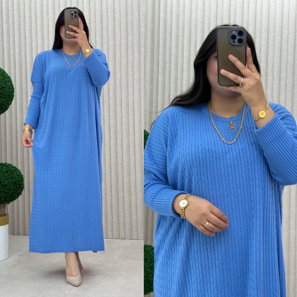 Piraye Triko Elbise Mavi
