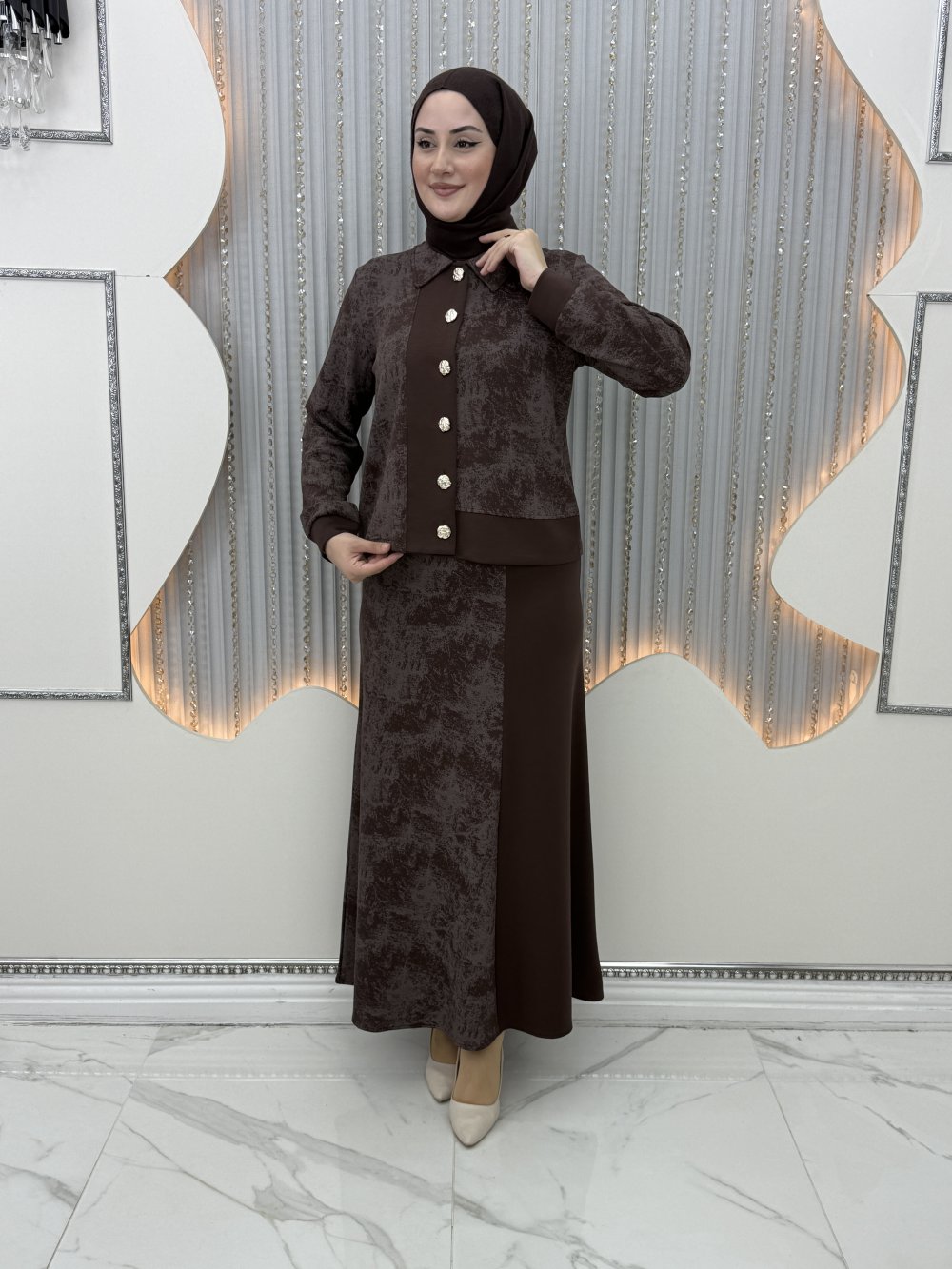 Ritim Etekli Takım Kahverengi