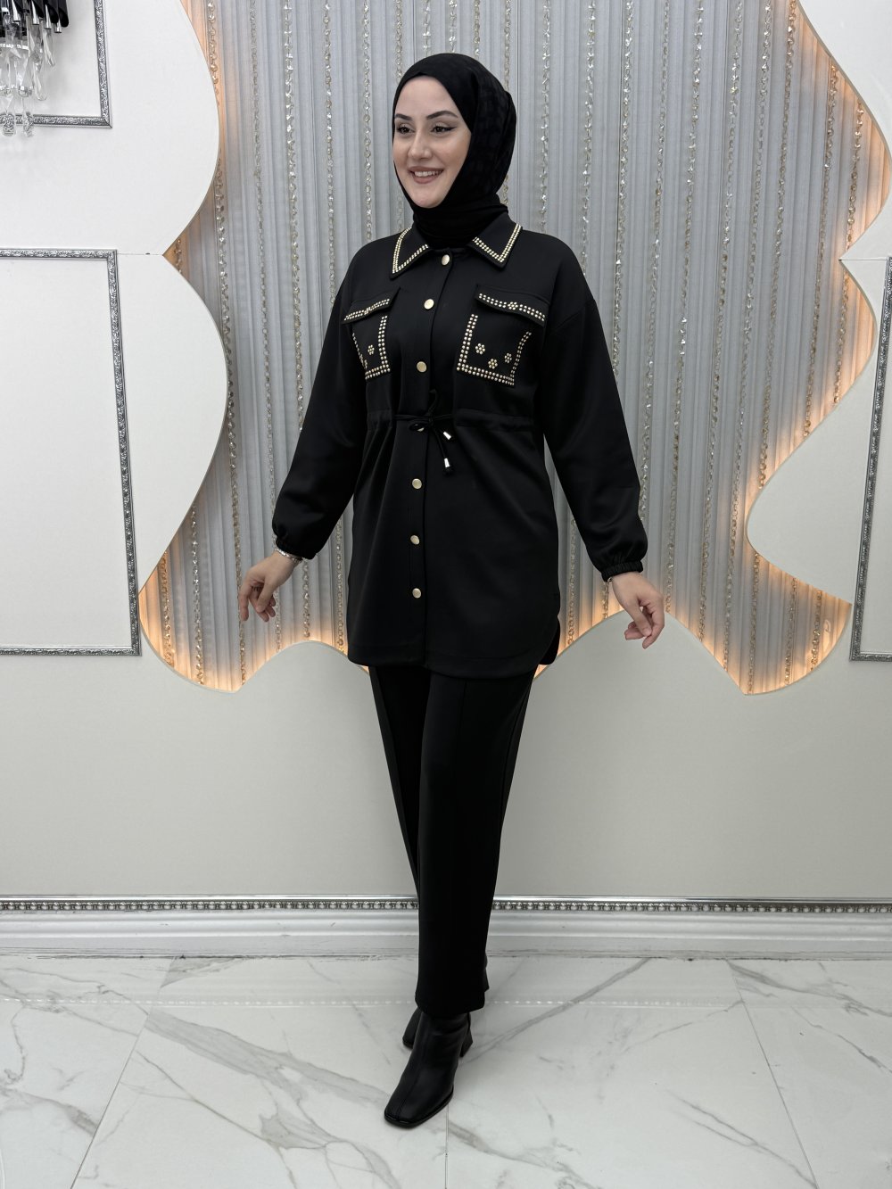 Yaka taş detaylı