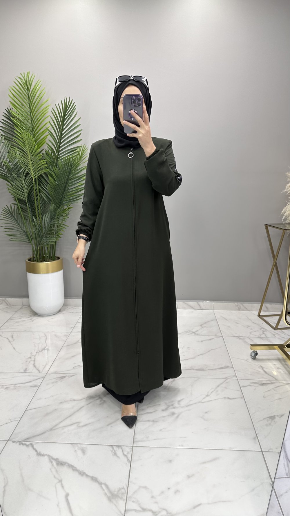 Kumlu Krep Kumaş, Kolları Sim Detaylıdır , Yanlardan Cepli, boy 145 cm