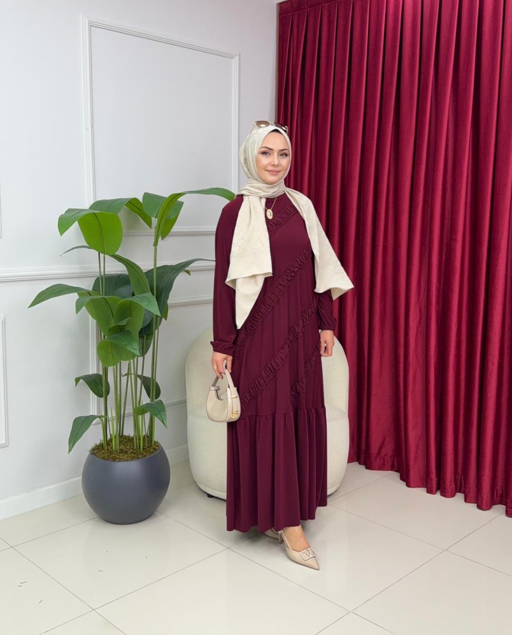SELEN ELBİSE - BORDO